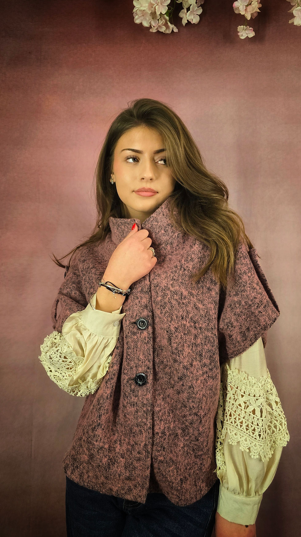 Veste Paleto rose poudrée